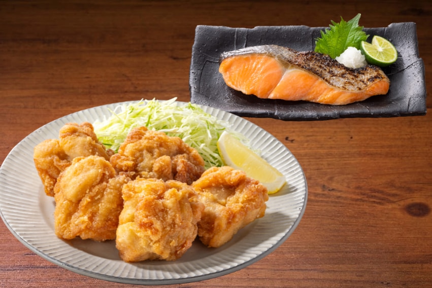 鶏もも肉、しょうがペースト、しょうゆ、食塩、醸造酢、しょうがパウダー、にんにくペースト、砂糖、ホエイパウダー、卵白粉、衣(でん粉、パン粉、小麦粉、大豆油、食塩、植物油脂、植物性たん白、ガーリックパウダー、オニオンパウダー、卵白粉、脱脂粉乳)、揚げ油(大豆油)/加工でん粉、増粘剤(加工でん粉、増粘多糖類)、調味料(アミノ酸等)、ポリリン酸Na、pH調整剤、乳化剤、ベーキングパウダー、香料、香辛料抽出物、(一部に小麦・卵・乳成分・大豆・鶏肉を含む)